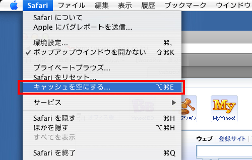 (1)[Safari]メニューから[キャッシュを空にする]を選択してください。